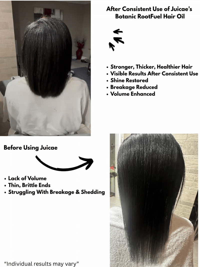 I’ve noticed such an amazing transformation in my hair since using this oil. My hair feels thicker, longer, and healthier, and it has so much more fullness. I feel more confident now that my hair is growing stronger and looking its best. Attached are before and after pics